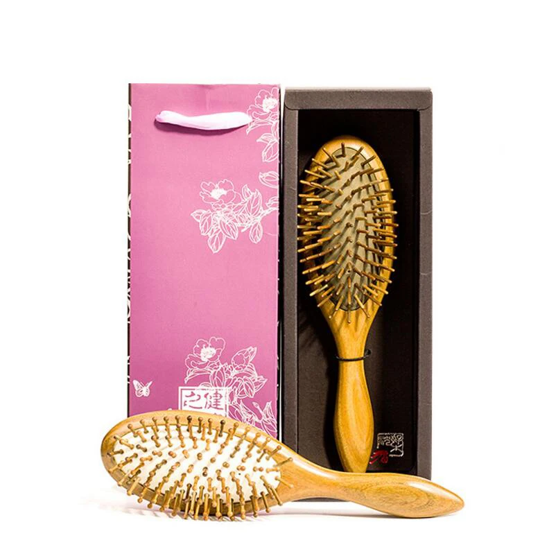 Special Offer TREESMILE 1 ADET Sandal Tarak El Cilalı Yeşil Tan Masaj Saç Fırçası Anti-statik Ahşap Kafa Saç Fırçası Şekillendirici Araçları D50 Discount [NEW!!] Today!
